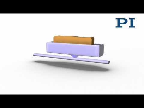 An integral part of a PILine® ultrasonic piezomotor is a piezo actuator that is preloaded against a movable, guided runner via a coupling element. The piezoceramic actuator is excited to ultrasonic oscillation by a high-frequency AC voltage between 100 and 200 kHz. Deformation of the actuator leads to periodic diagonal motion of the coupling element relative to the runner. The feed created is a few nanometers per cycle; the high frequencies lead to the high velocities. Preloading the piezoceramic actuator against the runner ensures self-locking of the drive when at rest and switched off.